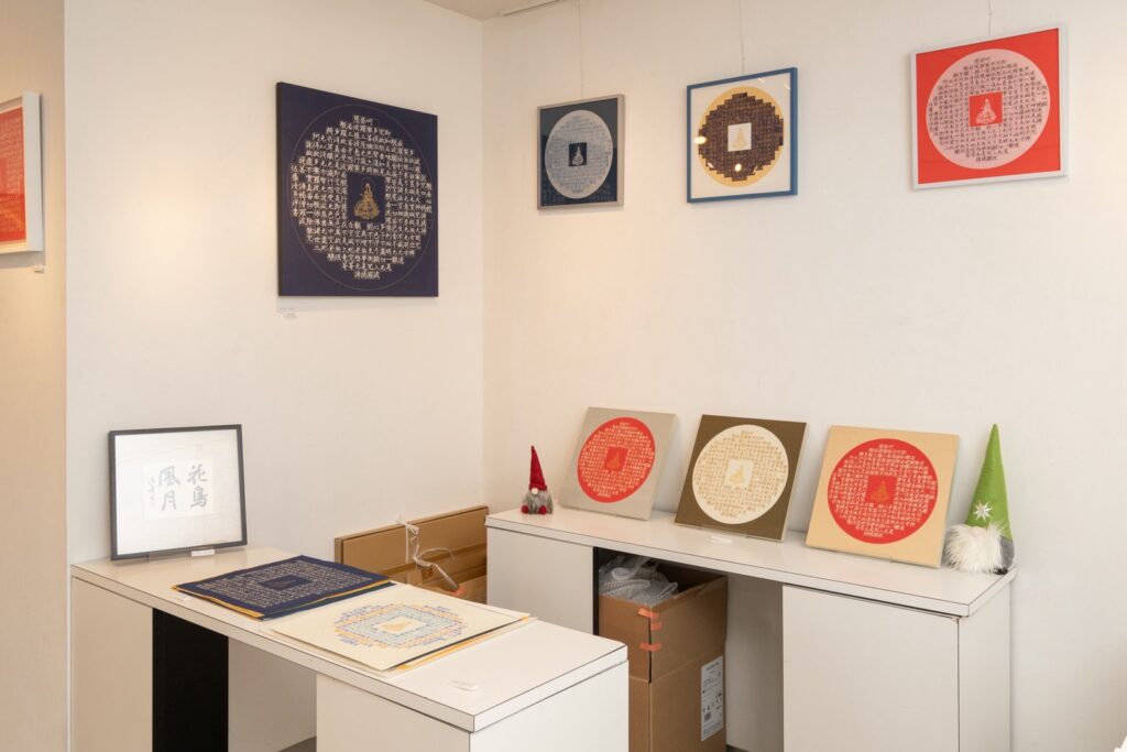 たくさんの色の般若心経に囲まれた展示空間は、とても居心地が良いとのお声をいただきました。